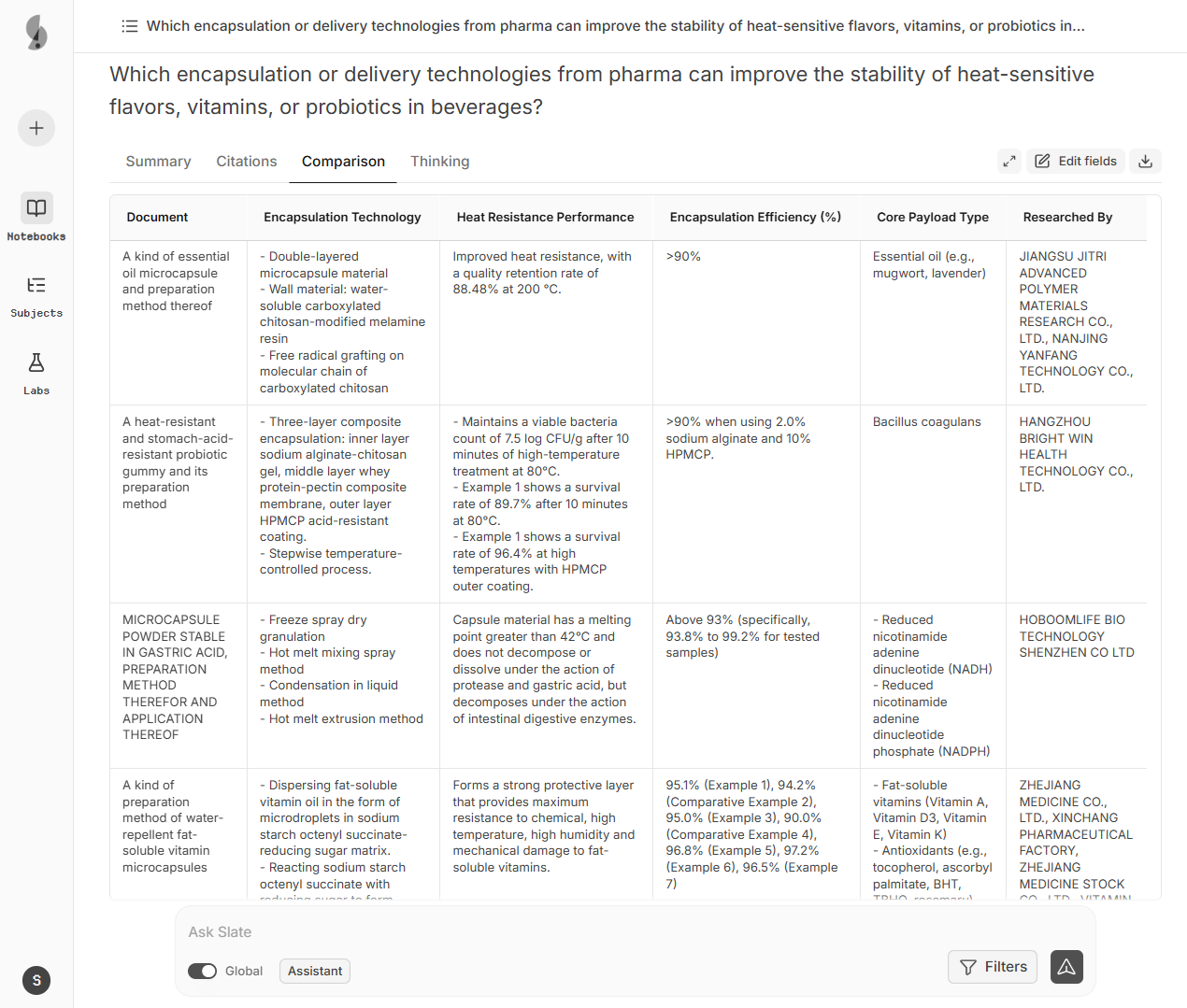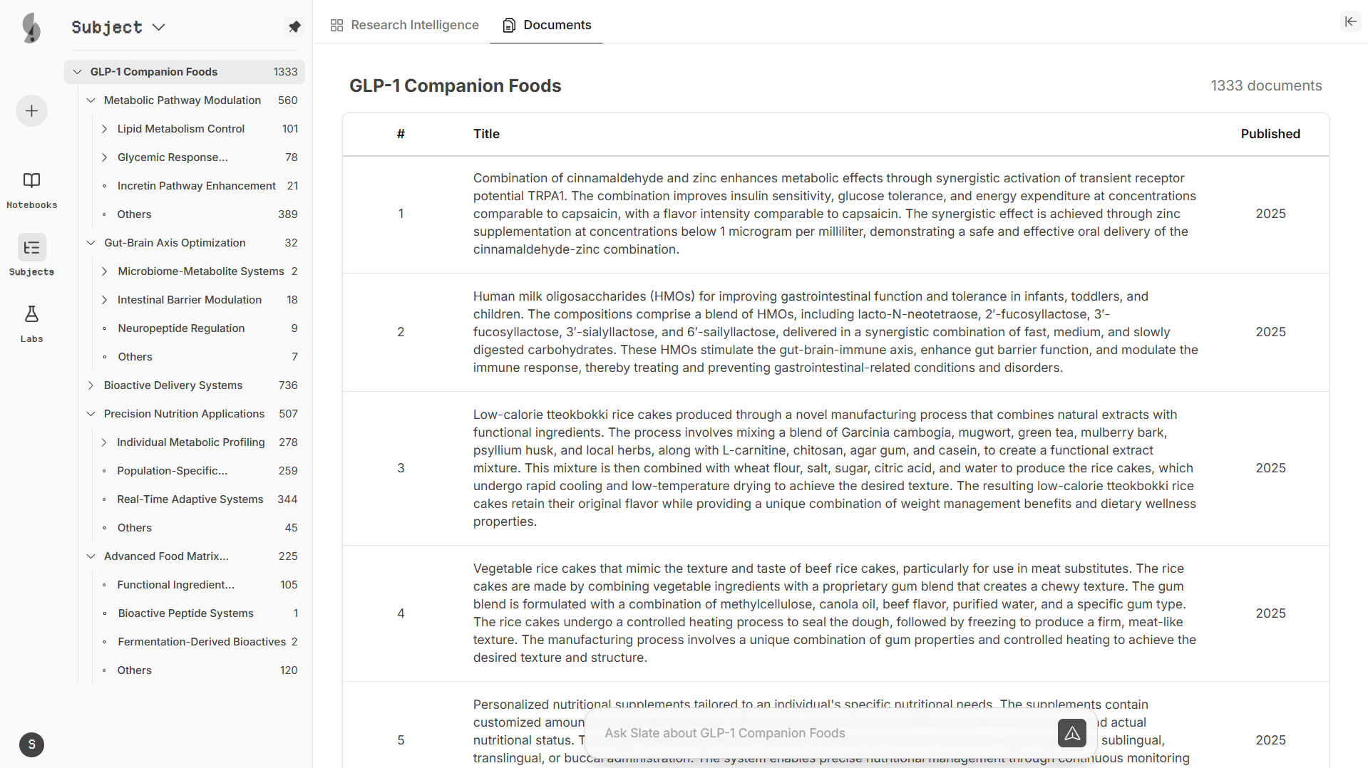 Slate understands F&B terminology and uncovers innovations hidden across millions of patents and research papers