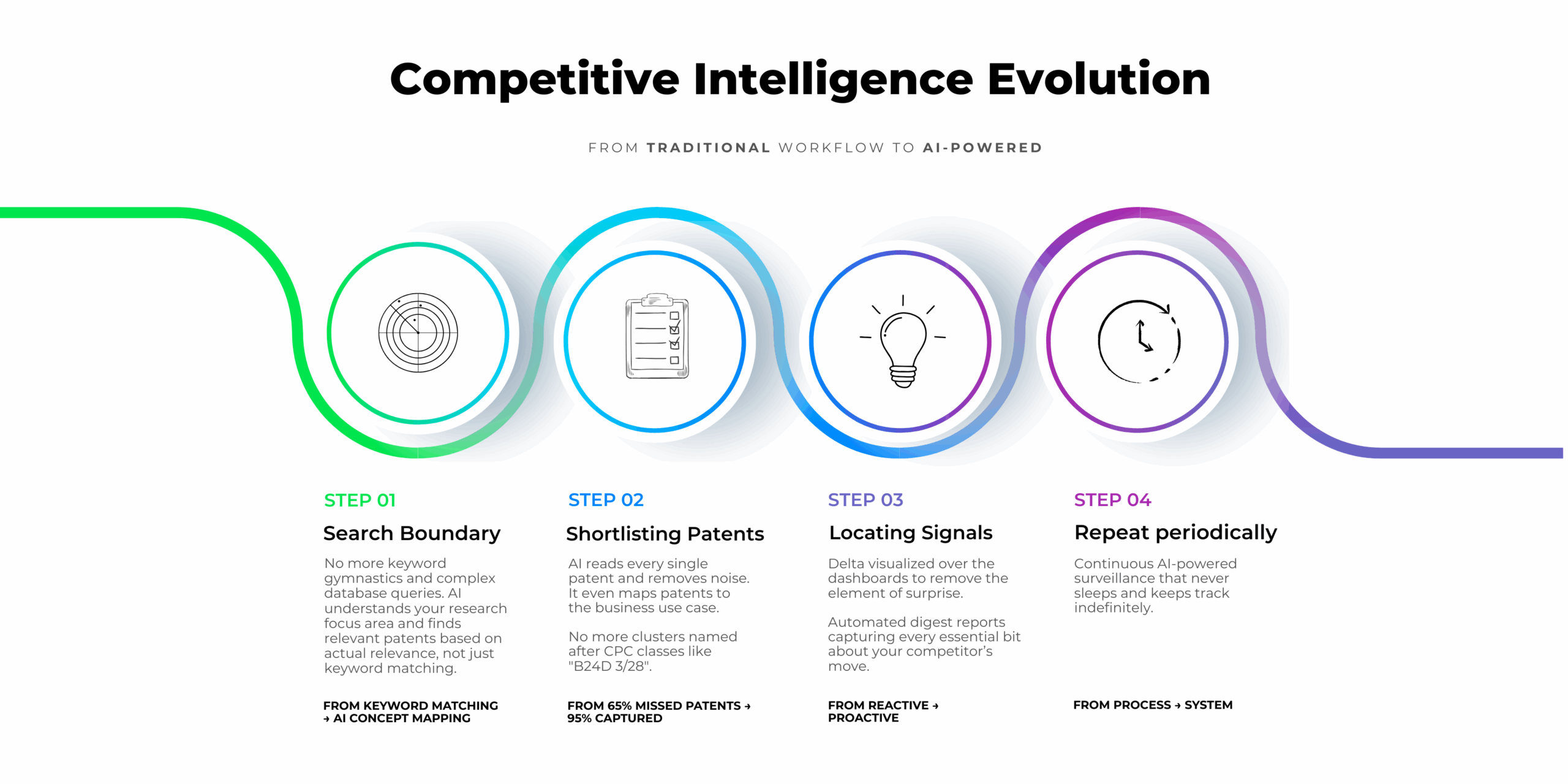 Track every data point imaginable with our comprehensive AI-powered monitoring system covering all aspects of competitor IP activity